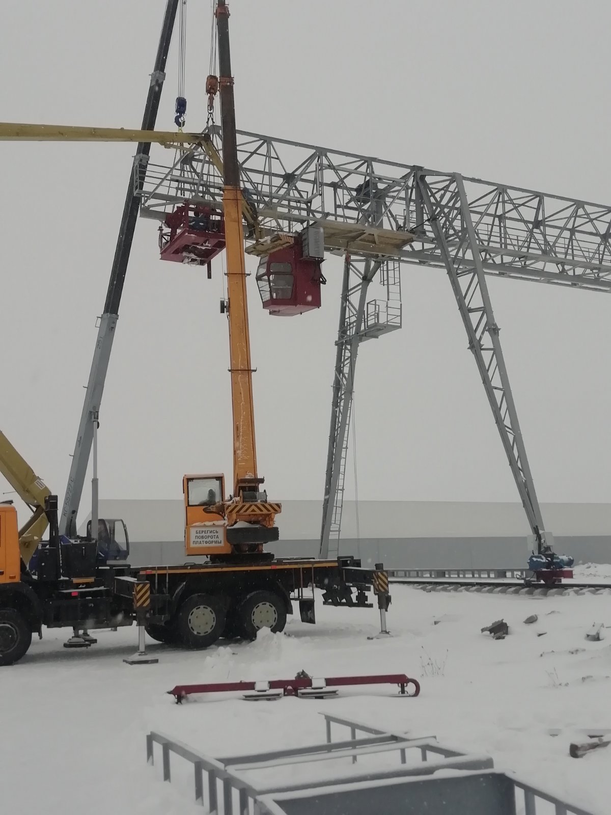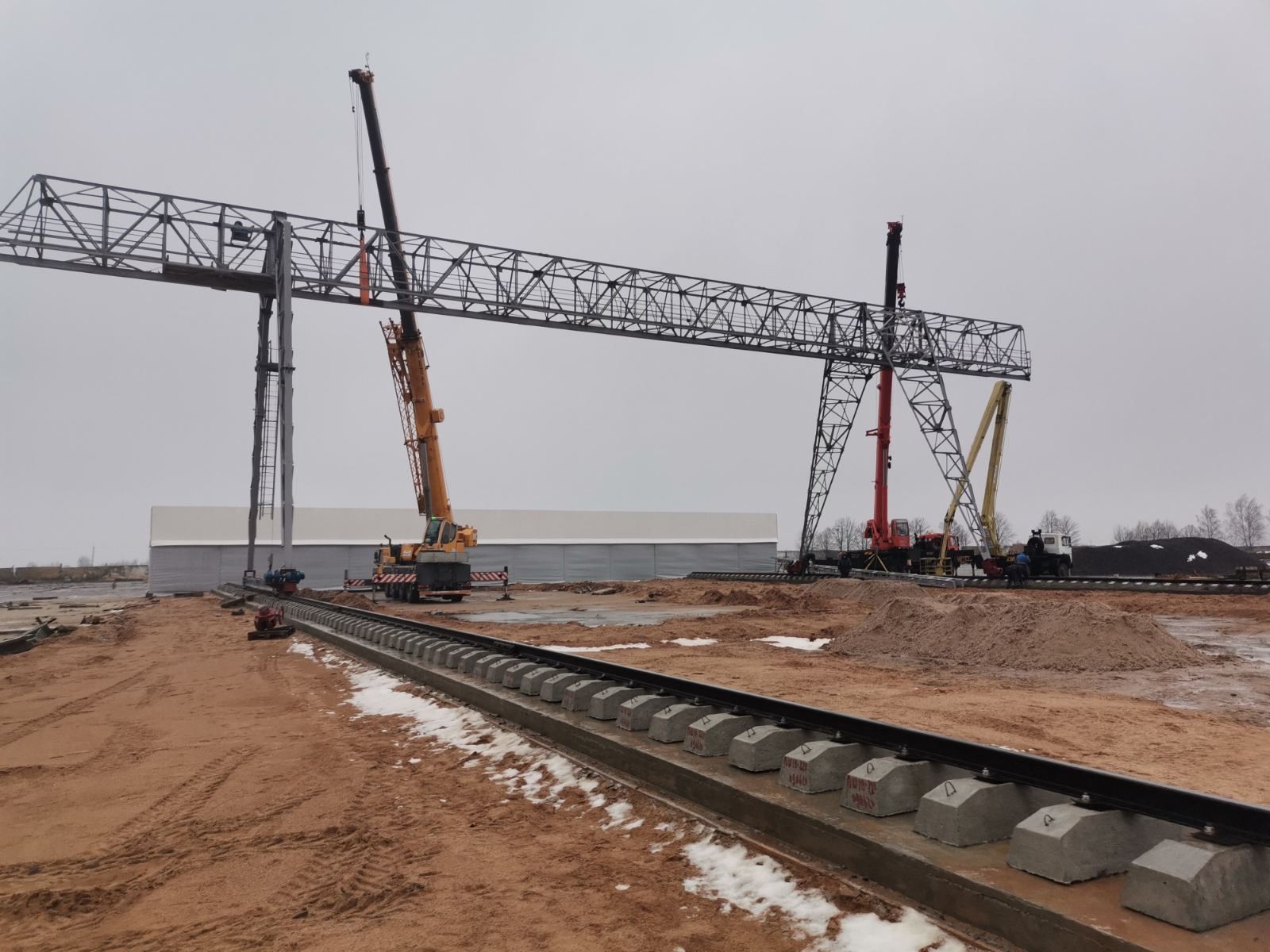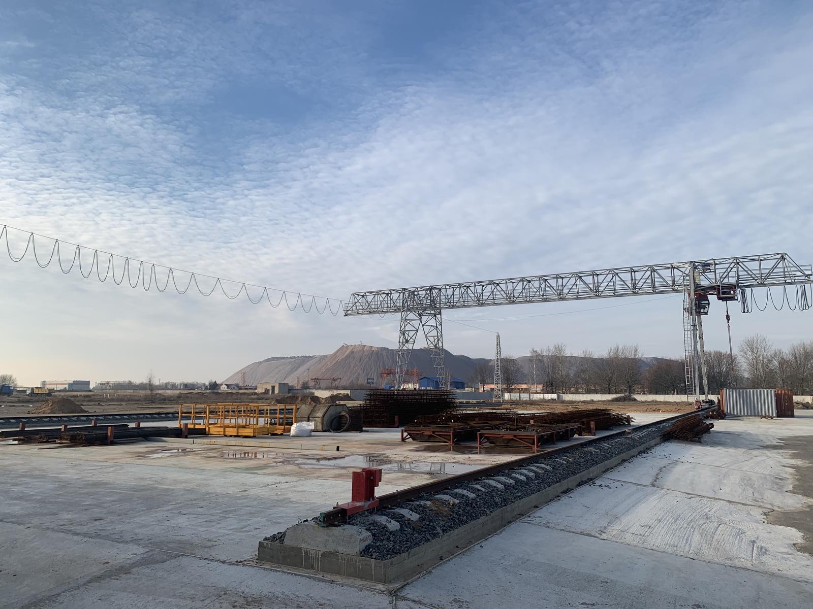 Описание: После приобретения территории, ООО «Солигорскспецмонтаж» начало строительство площадки для складирования материалов. Согласно проекта осуществлен монтаж козлового крана грузоподъемностью 10 тонн, а также уложено более 1000 кубических метров бетона.