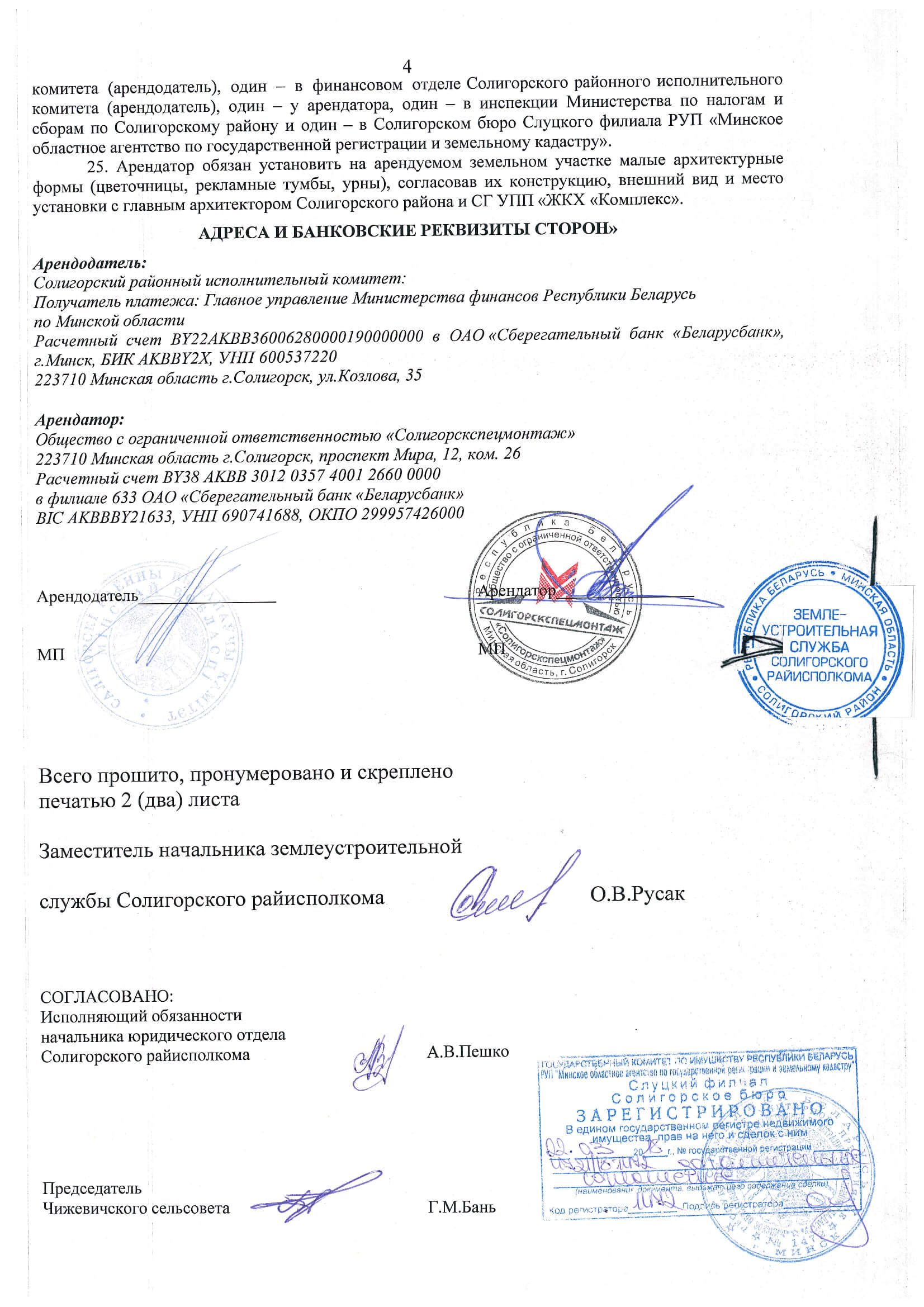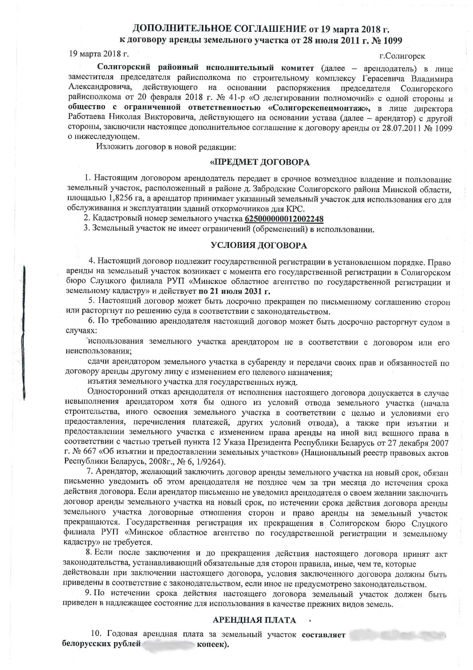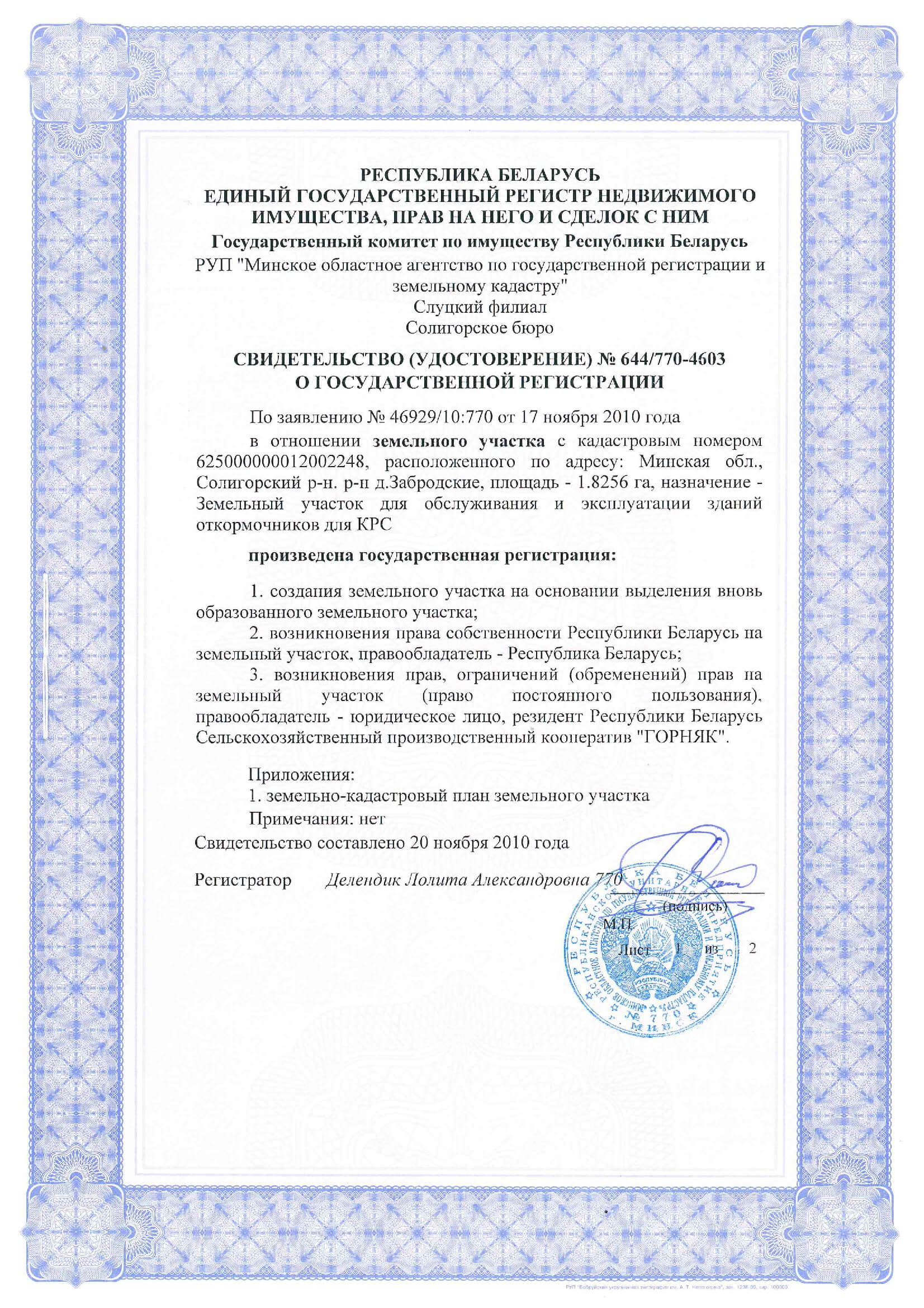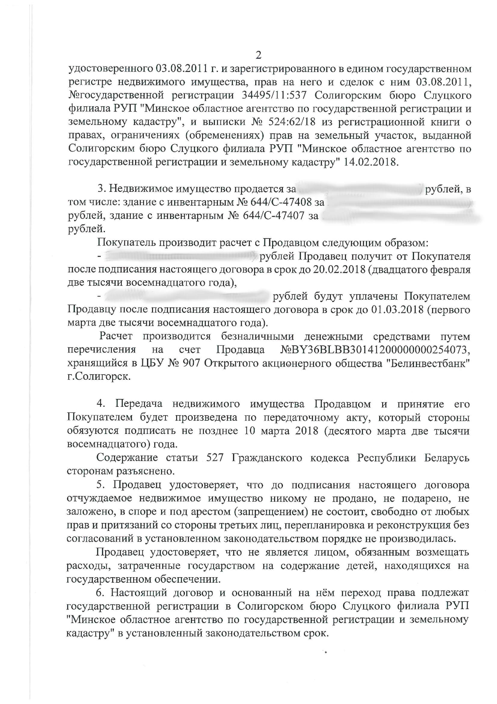 27.02.2018г. ООО «Солигорскспецмонтаж» приобрело: одноэтажное блочное здание откормочника для КРС с инв.№644/С-47408 (S-947,3м2), одноэтажное блочное здание откомочника для КРС с инв.№644/С-47407 (S-1029,4м2), расположенные по адресу, Республика Беларусь, Минская область, Солигорский район, д.Забродские. Сведения о земельном участке: кадастровый номер 625000000012002248, категория – земли промышленности, транспорта, связи, энергетики, обороны и иного назначения (дата государственной регистрации: 17.11.2010 года). Целевое назначение: Земельный участок для строительства и обслуживания производственного здания с административно-бытовым и вспомогательными зданиями и сооружениями.